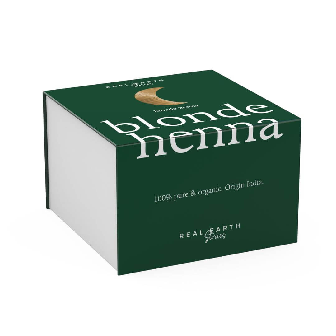 Blonde Henna – INCI: Cassia Obovata leaf powder, Lawsonia Inermis powder & Matricaria Recutita Leaf Powder.